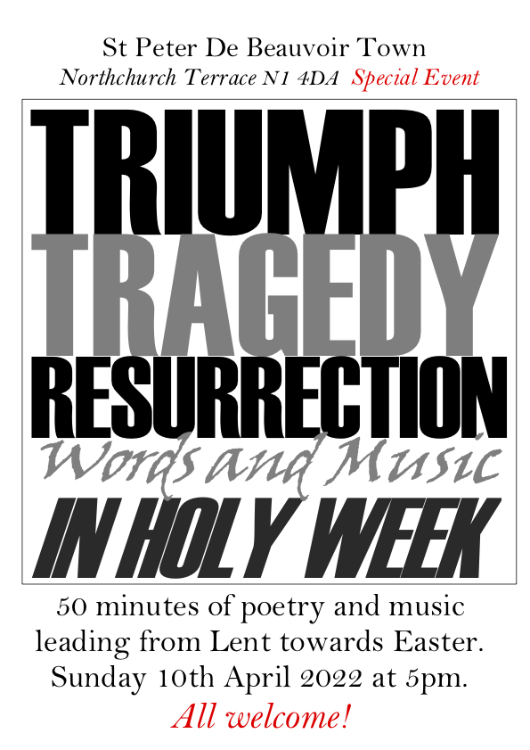 Holy Week Words and Music 2022 50 minutes of poetry and music leading from Lent towards Easter. Sunday 10th April 2022 at 5pm. All welcome![…]